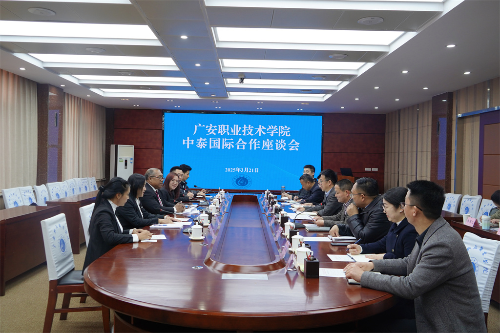 王义全发表讲话,并提出三点期望。一是以合作促发展,共绘职业教育国际化新图景,通过“新能源汽车国际班”这一载体,共同探索“中文+职业技能”人才培养模式,为区域产业链输送具有国际视野的技术技能人才;二是以文化为纽带,厚植中泰职业教育合作根基,与泰方搭建常态化交流机制;共筑学生双向流动桥梁,让更多泰国青年走进中国西部,让广安学子深入东盟产业一线;三是以行动践承诺,谱写合作共赢新篇章,以项目为抓手,着眼未来,根据双方的优势,拓展合作领域、创新合作模式,谋划更多的合作项目。